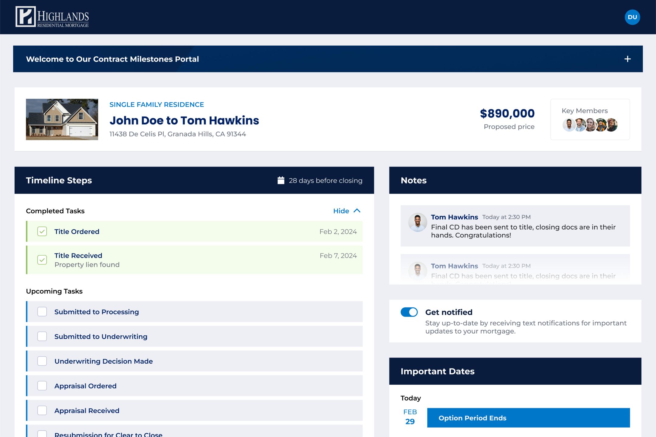 Never miss a deadline again. Our portal helps you stay on top of important dates and milestones, ensuring a smooth transaction process.